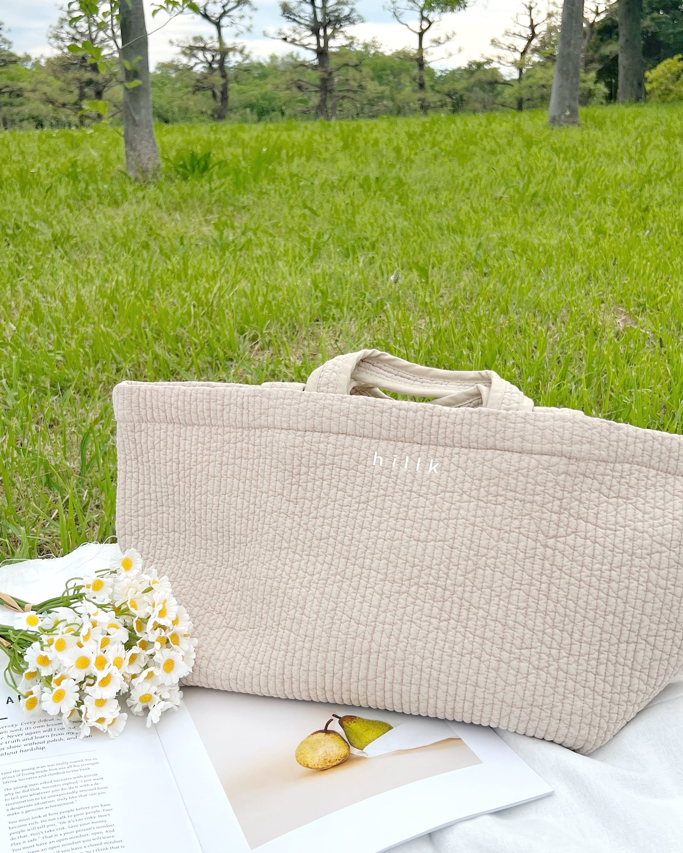 新作のオリジナルヌビバッグには、かわいいhillkのロゴが刺繍されています。