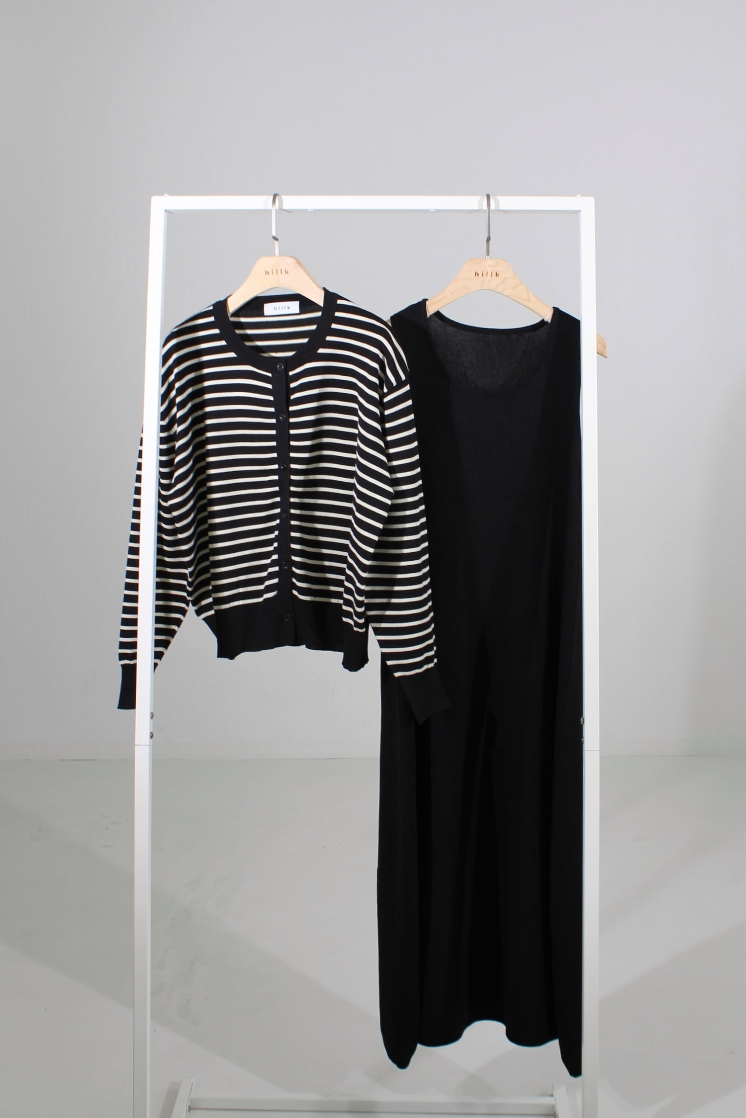 【セット】Striped cardigan × Sleeveless dress(2 colors)