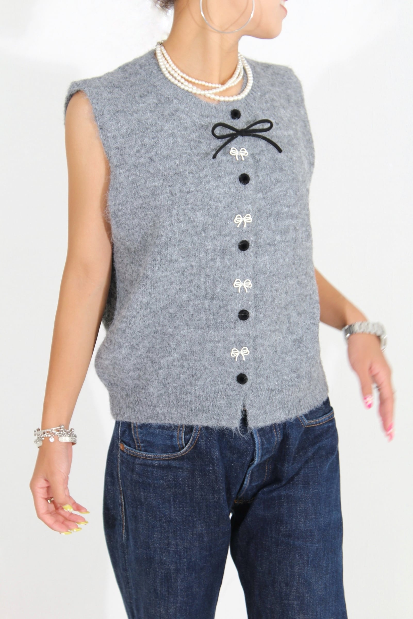 Ribbon knit vest(2 colors)