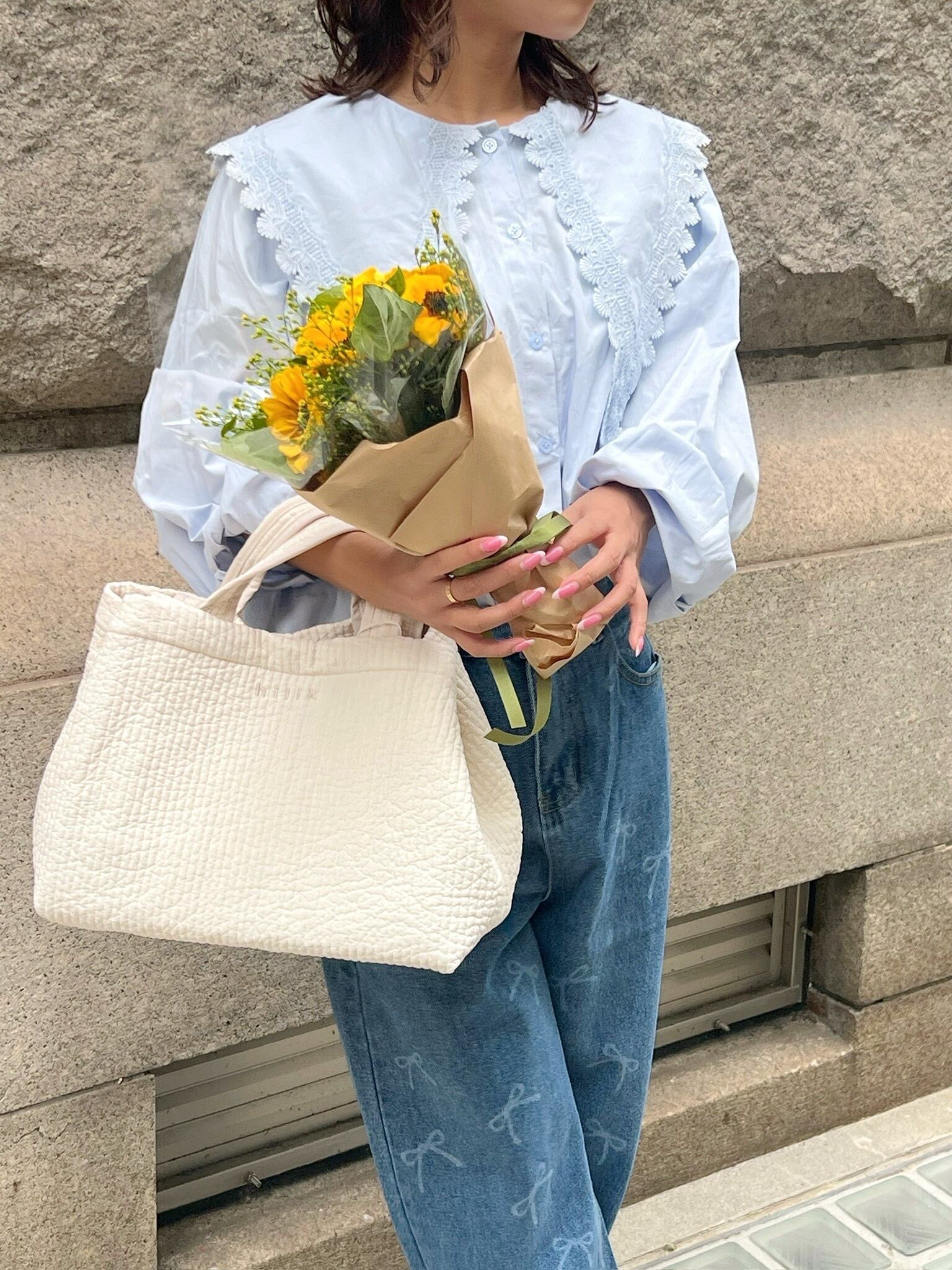 さりげない刺繍が可愛く、他の人とは被らないポイントに。