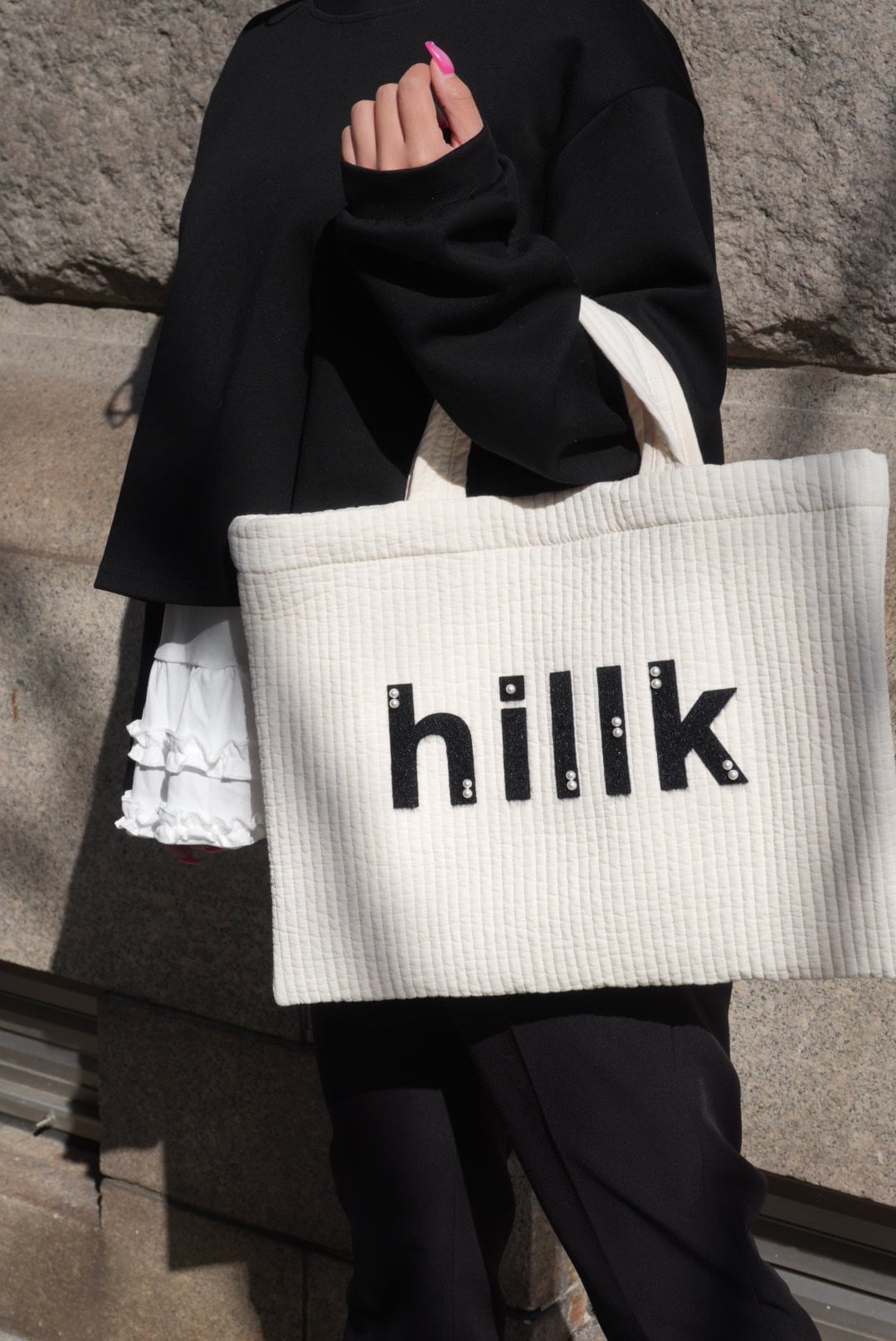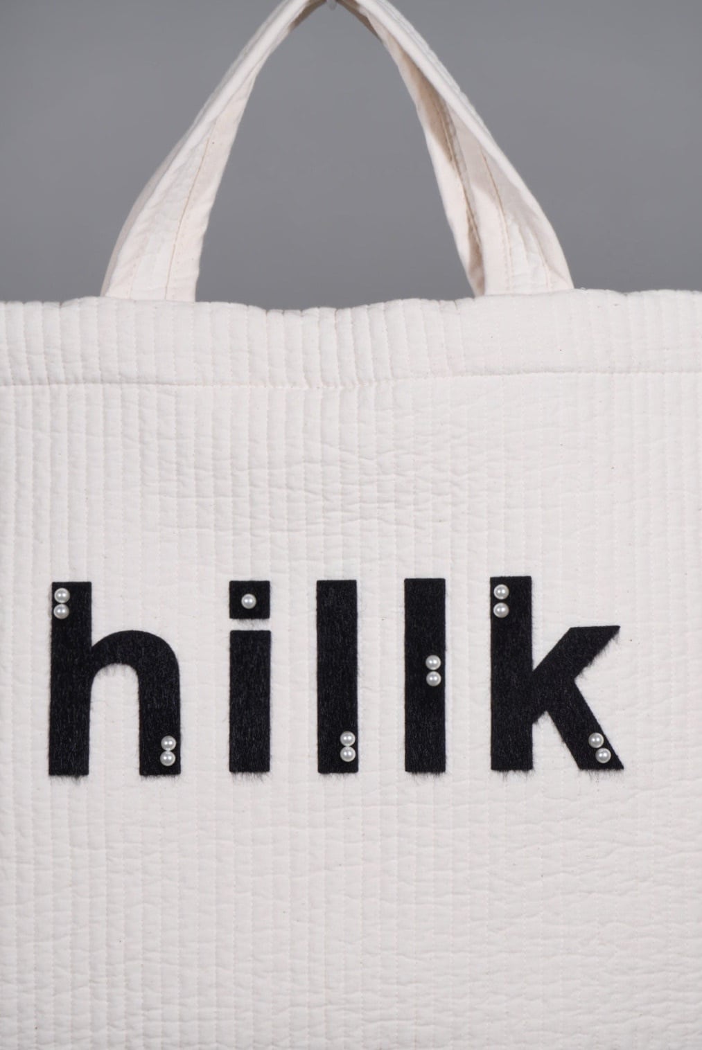 新作のオリジナルヌビバッグには、かわいいhillkのロゴが刺繍されています。