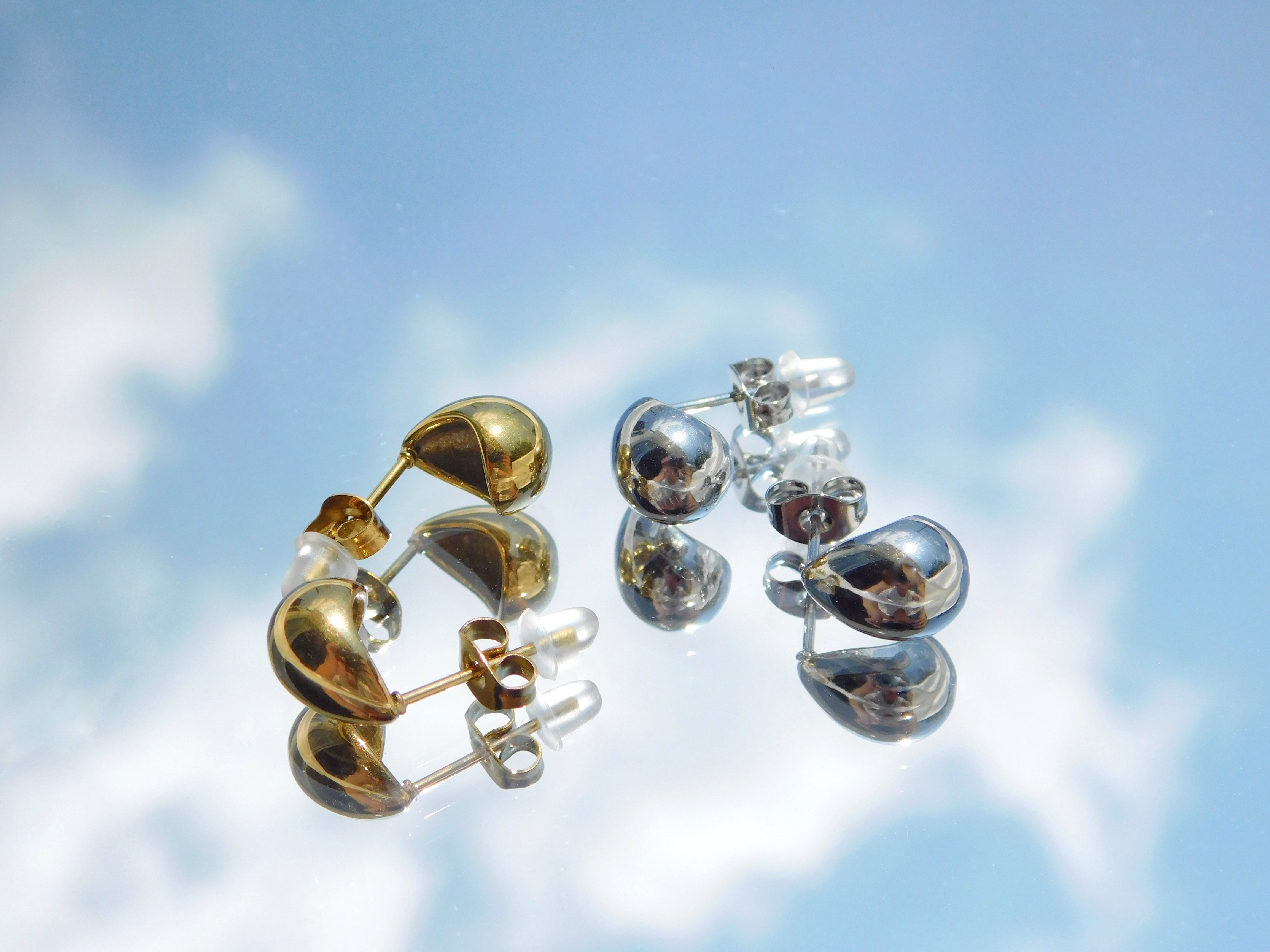 ドロップ型のフープピアスが耳元に優しくフィットし、顔周りを美しく引き立ててくれます。